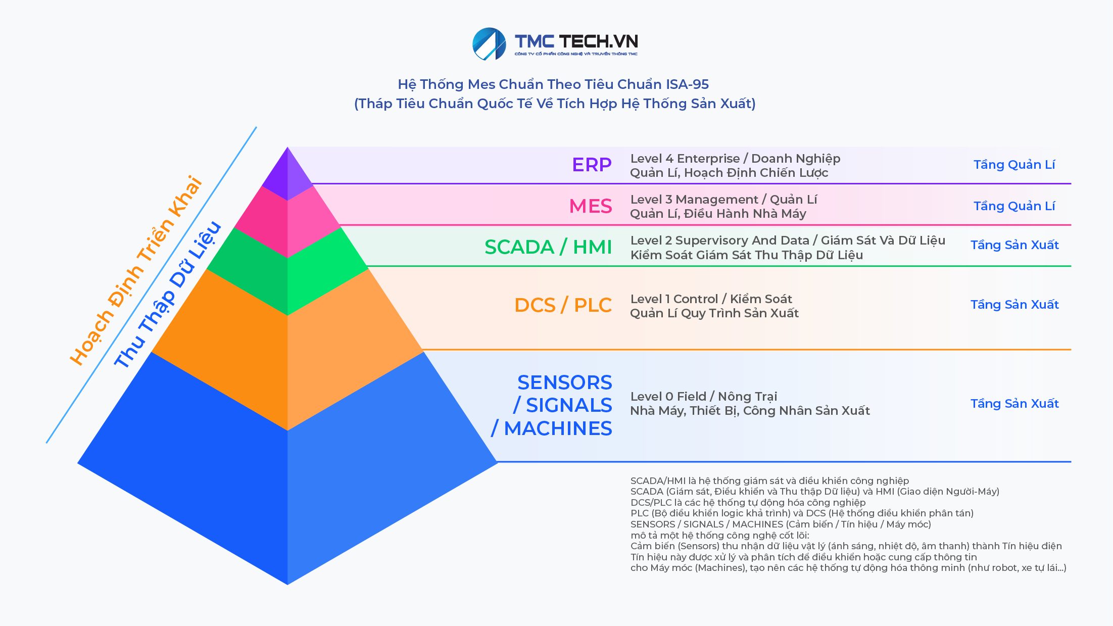 Thông qua tích hợp ERP & MES, TMC Tech giúp doanh nghiệp phối hợp hoạt động sản xuất với quản lý chiến lược một cách hiệu quả nhất, biến dữ liệu thô thành thông tin có thể hành động nhanh, đúng và kịp thời — nền tảng thiết yếu để phát triển nhà máy số trong thời đại 4.0.